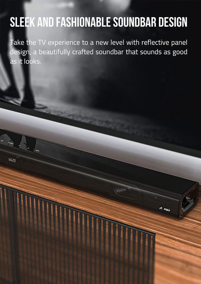 - • Soundbar con parlante de rango completo 52x92mm y dos unidades de tweeter de 1"